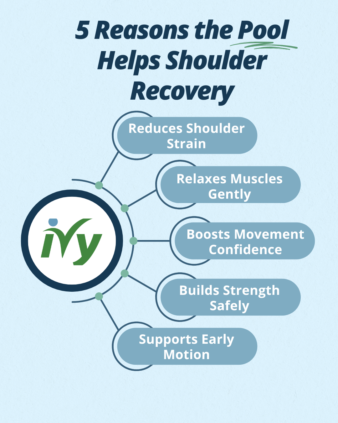 Core control supports better shoulder mechanics. Water-based posture work helps limit compensation as your shoulder rebuilds mobility and strength.